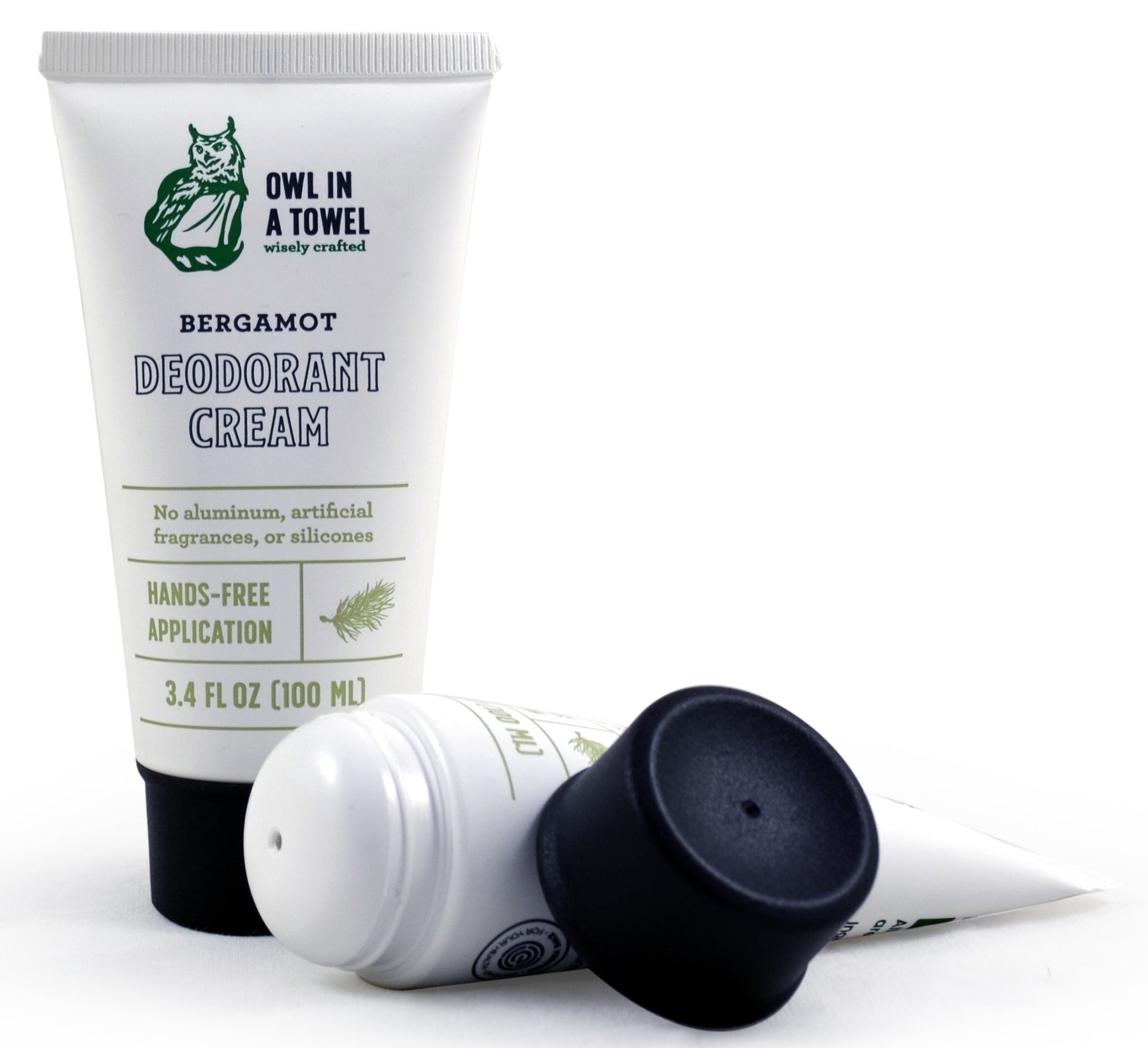 No mess. No worries. Deodorant creams are typically in jars and pots, requiring application by hand. Our Bergamot Deodorant Cream applies with a unique hands-free applicator. Twist off the cap, squeeze the tube and apply the applicator directly onto underarms.