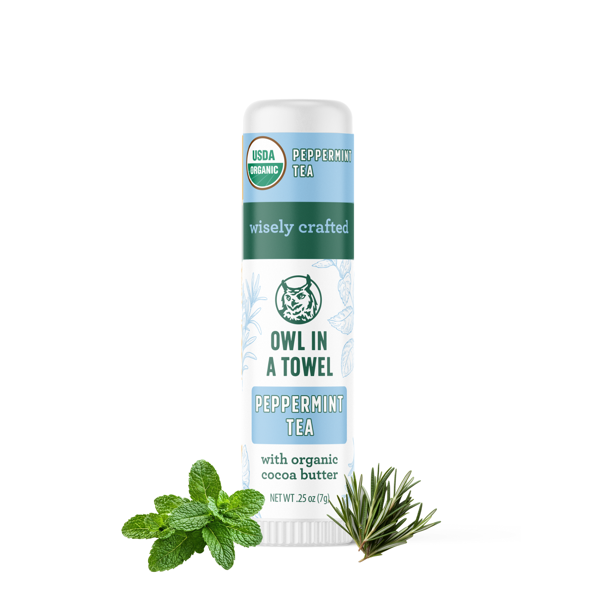 Our Peppermint Tea Lip balm is a delightful blend of soothing cocoa butter, healing calendula, anti-inflammatory Vitamin E, and skin-nourishing emollients, infused with refreshing peppermint, tea tree and rosemary. Your lips will drink it up!